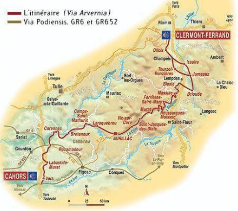 LA VIA ARVERNA de 2006 à 2011 .Départ de MASSIAC Cantal , 6 étapes pour atteindre le Col de RONCEVEAUX, Espagne JUSQU'A 20 PARTICIPANTS.