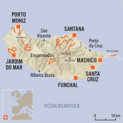 Autotour de l'île de MADERE avec étapes à FUNCHAL ,JARDIM Do MAR,PORTO MONIZ ,SANTANA, et SANTA CRUZ pour randonner le long des levadas ou gravir los picos.