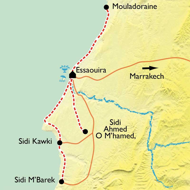RIVAGES D'ESSAOUIRA 2006 - TREK à la carte construit avec CHAMINA VOYAGES . Un guide ,trois chameliers et 10 participants.